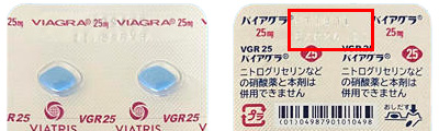 本物のバイアグラのブリスター包装には製造番号、箱には製造番号が印刷されています。これらが明確に印字されているか、偽造されている痕跡がないかを確認します。